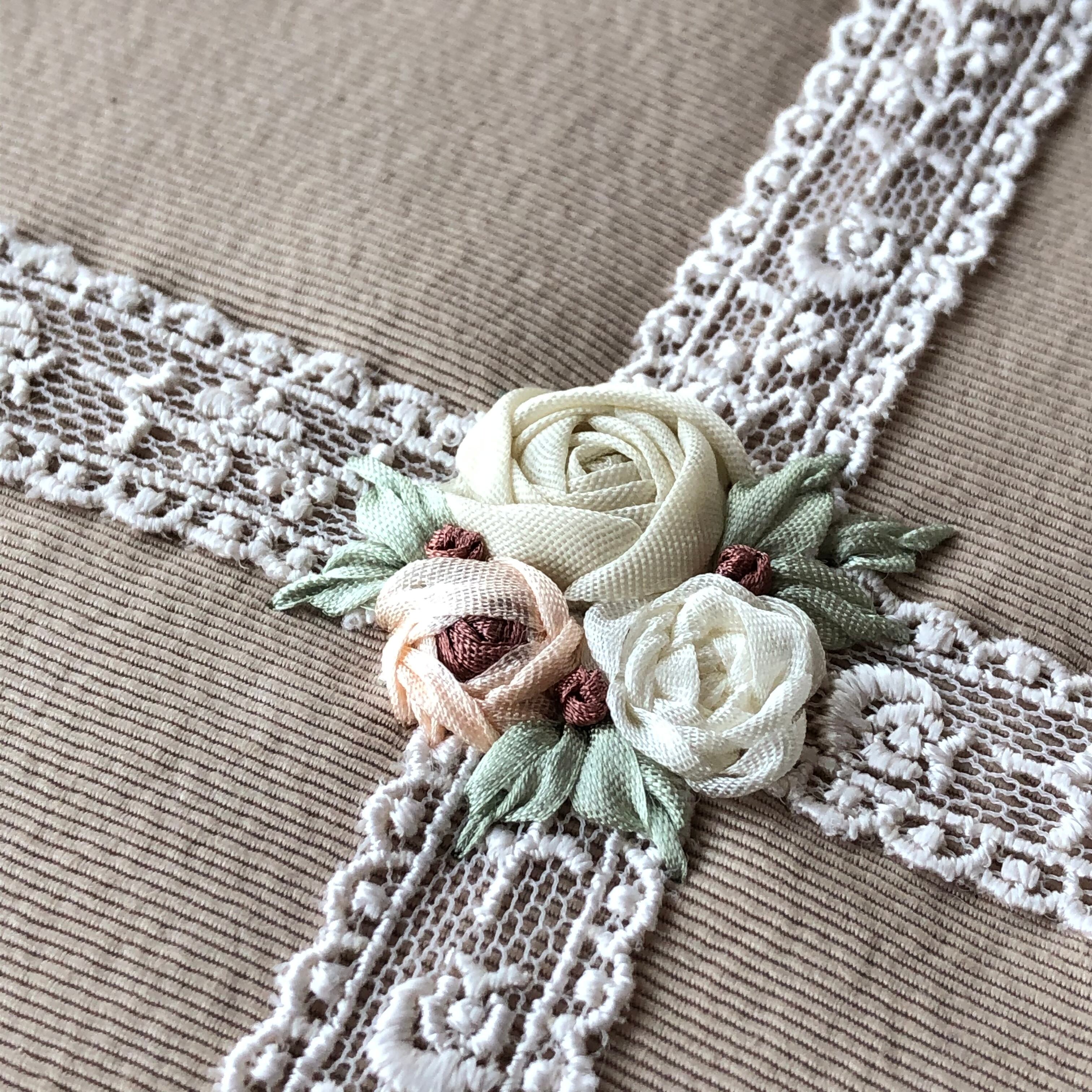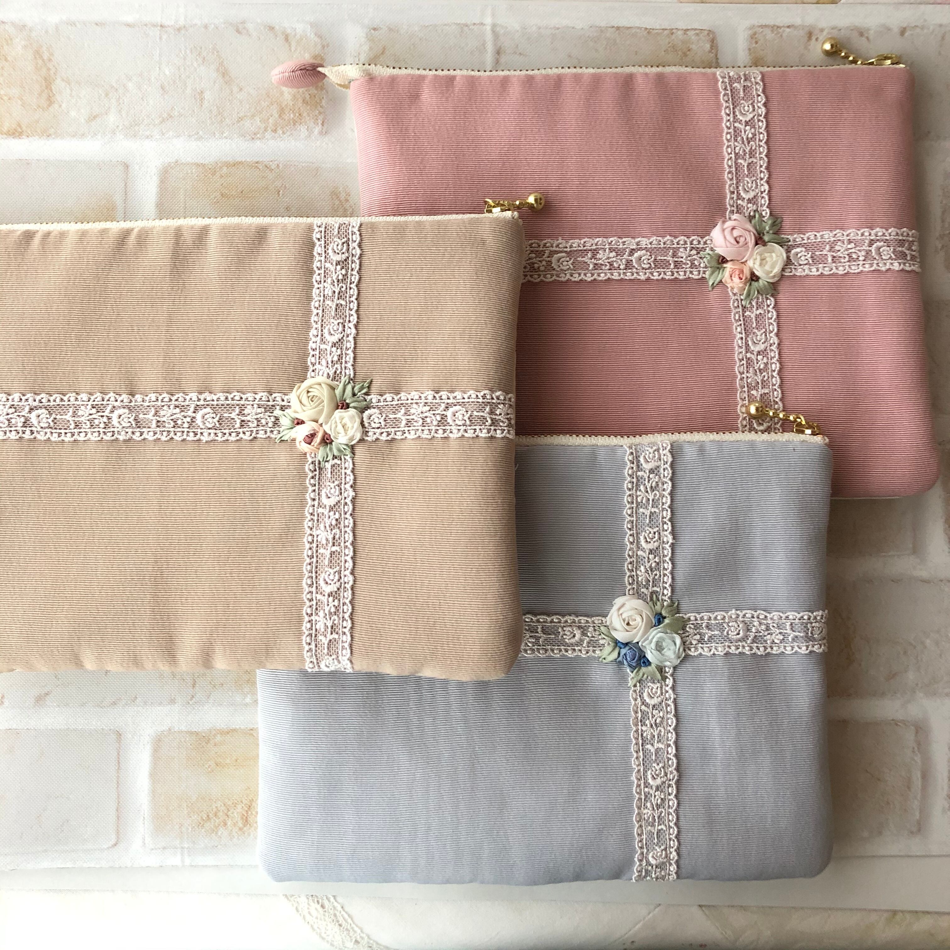 リボン刺繍のファスナーポーチ
