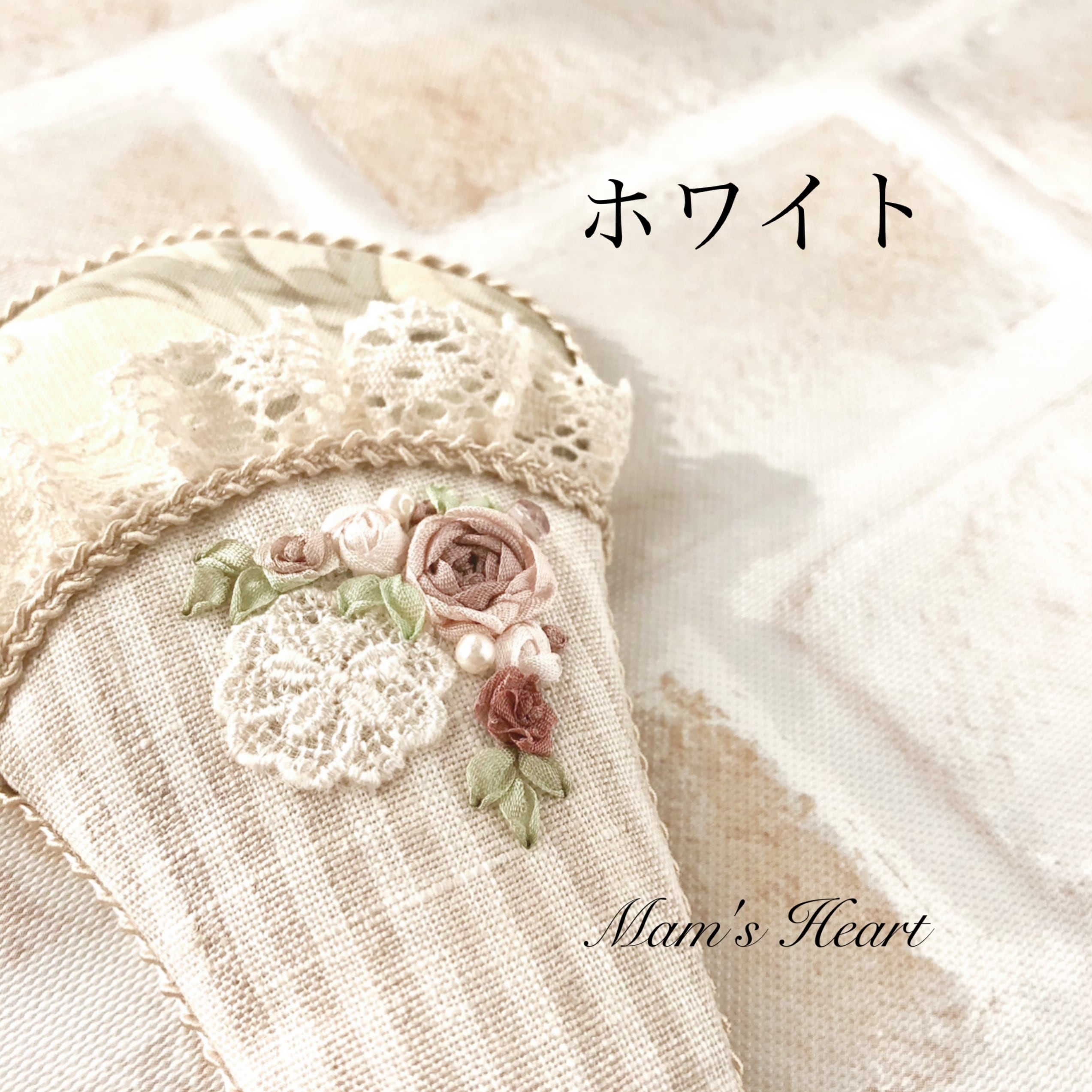 ハサミケースの中央モチーフレースがホワイト、グレーの2色ありますのでお好みのカラーを選択して下さい。