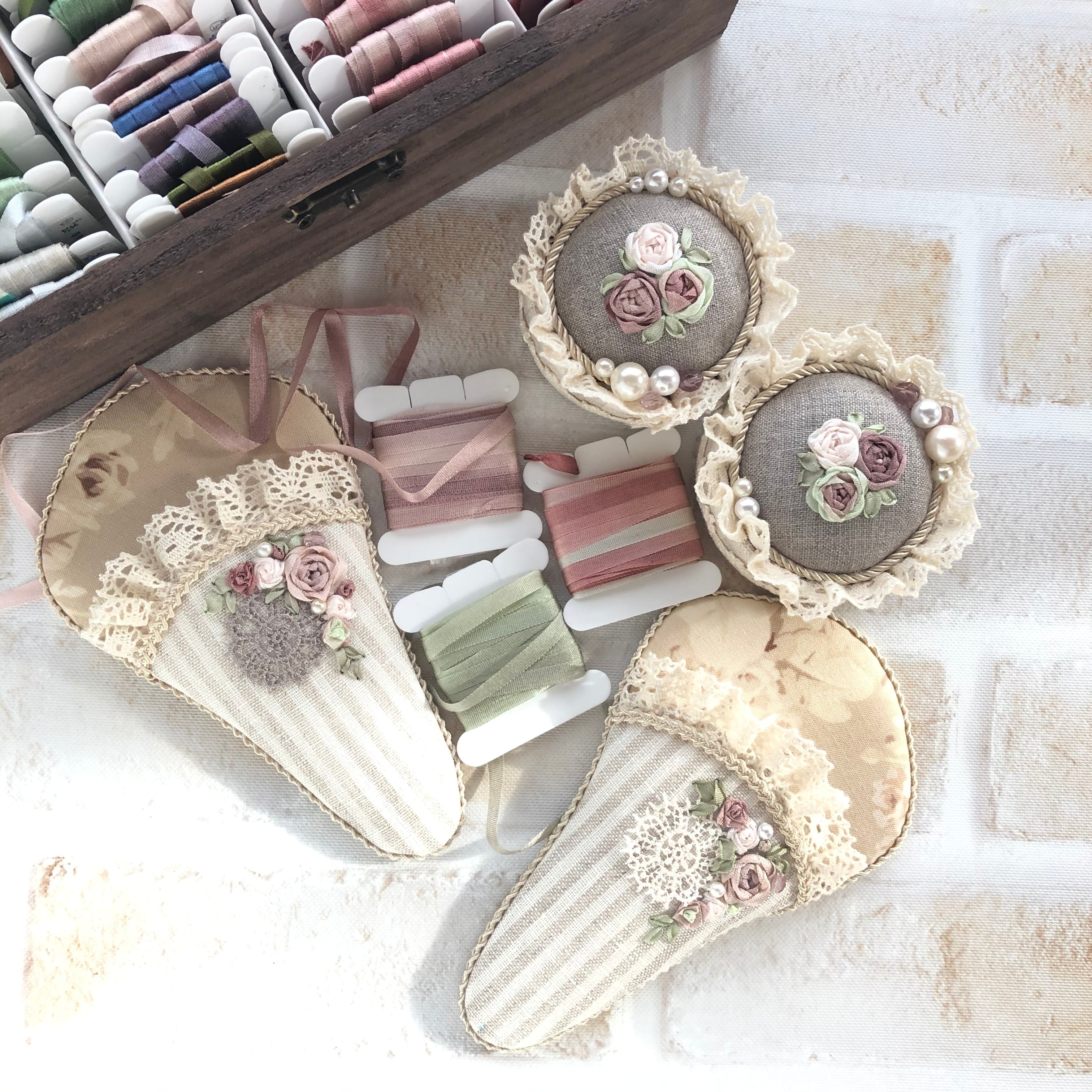 *リボン刺繍用針、刺繍枠、縫い針、縫い糸