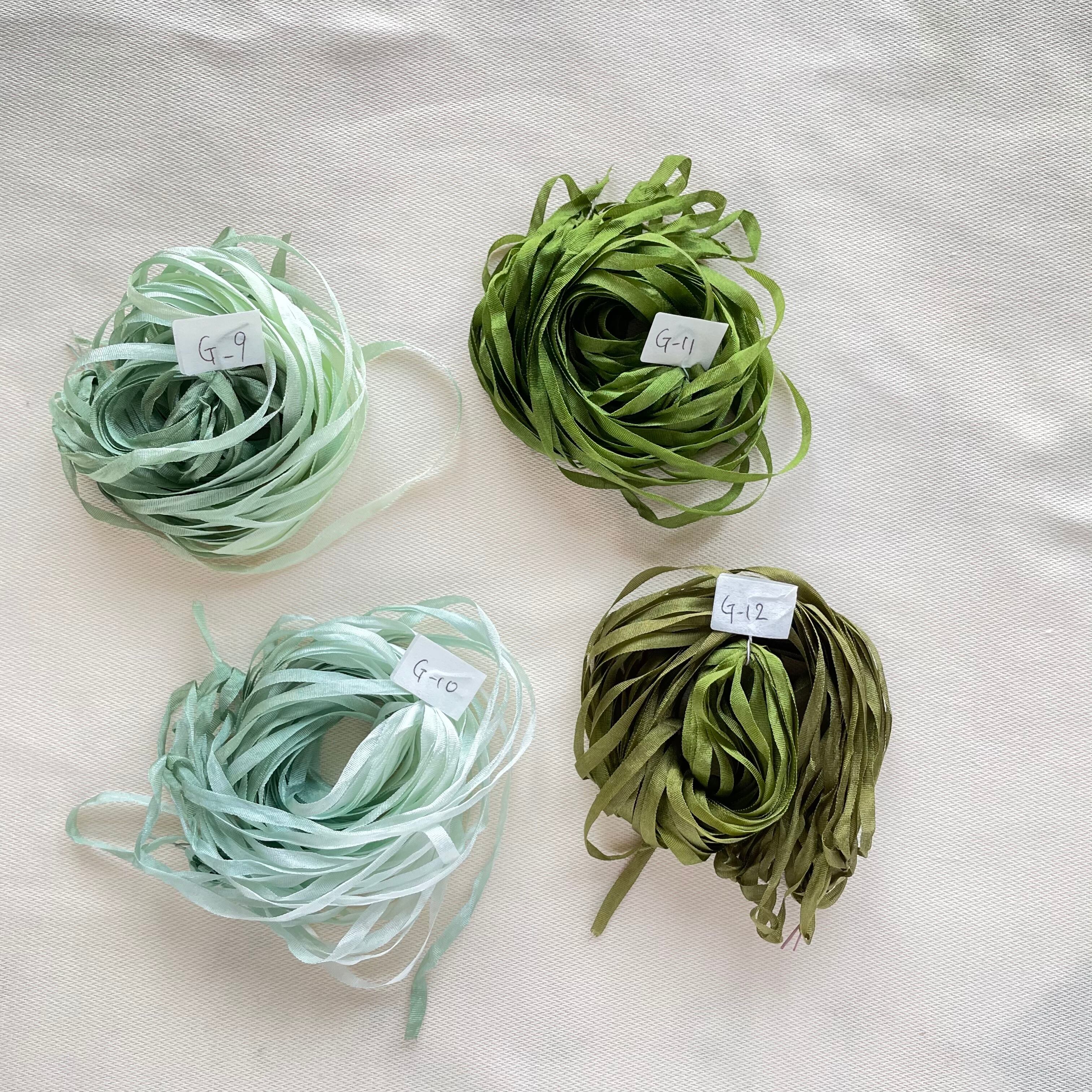 アイロンは絹の適温でアイロンを置いてリボンの方を引っ張ると手早く仕上がります(時々アイロンを起こして台を冷ましてください!)