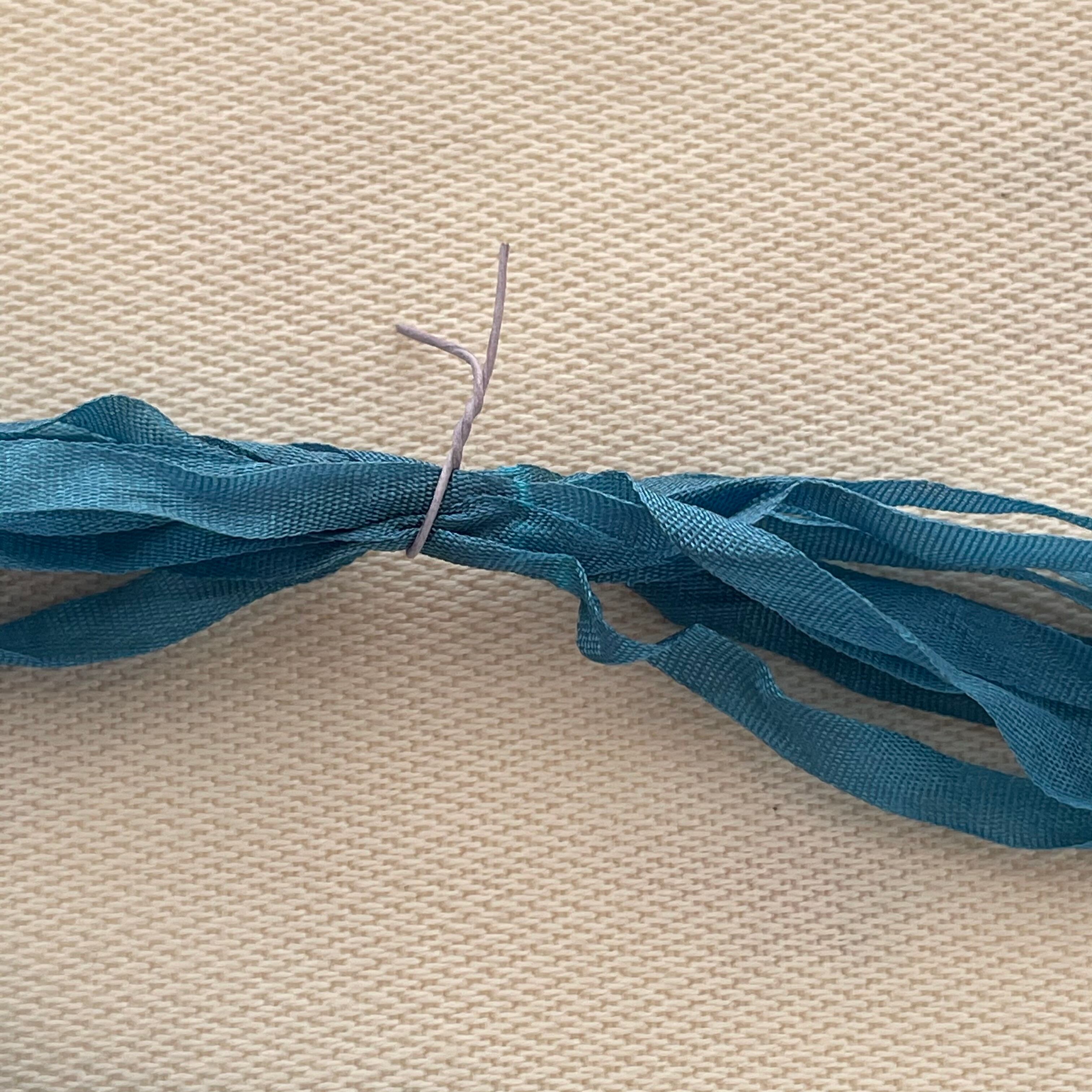 アイロンは絹の適温でアイロンを置いてリボンの方を引っ張ると手早く仕上がります(時々アイロンを起こして台を冷ましてください!)