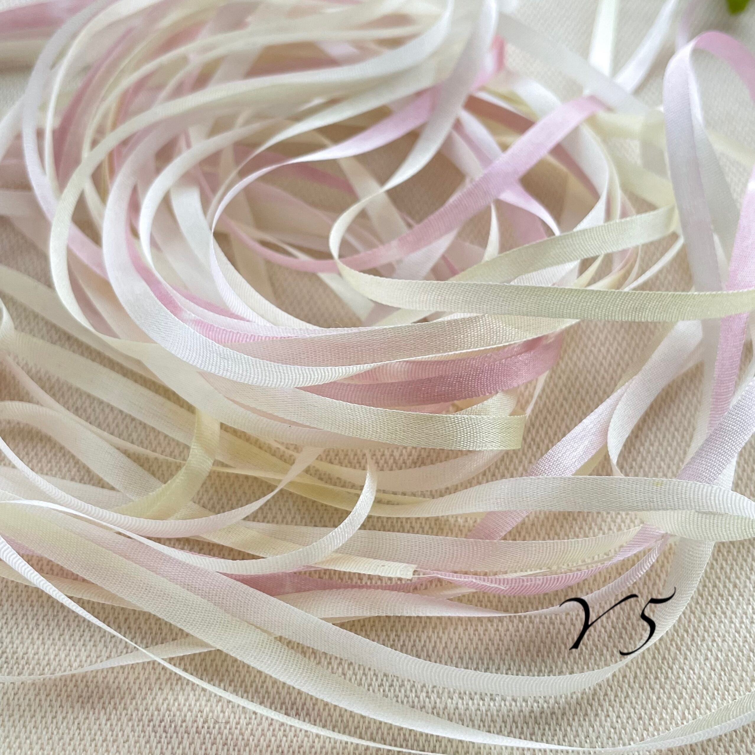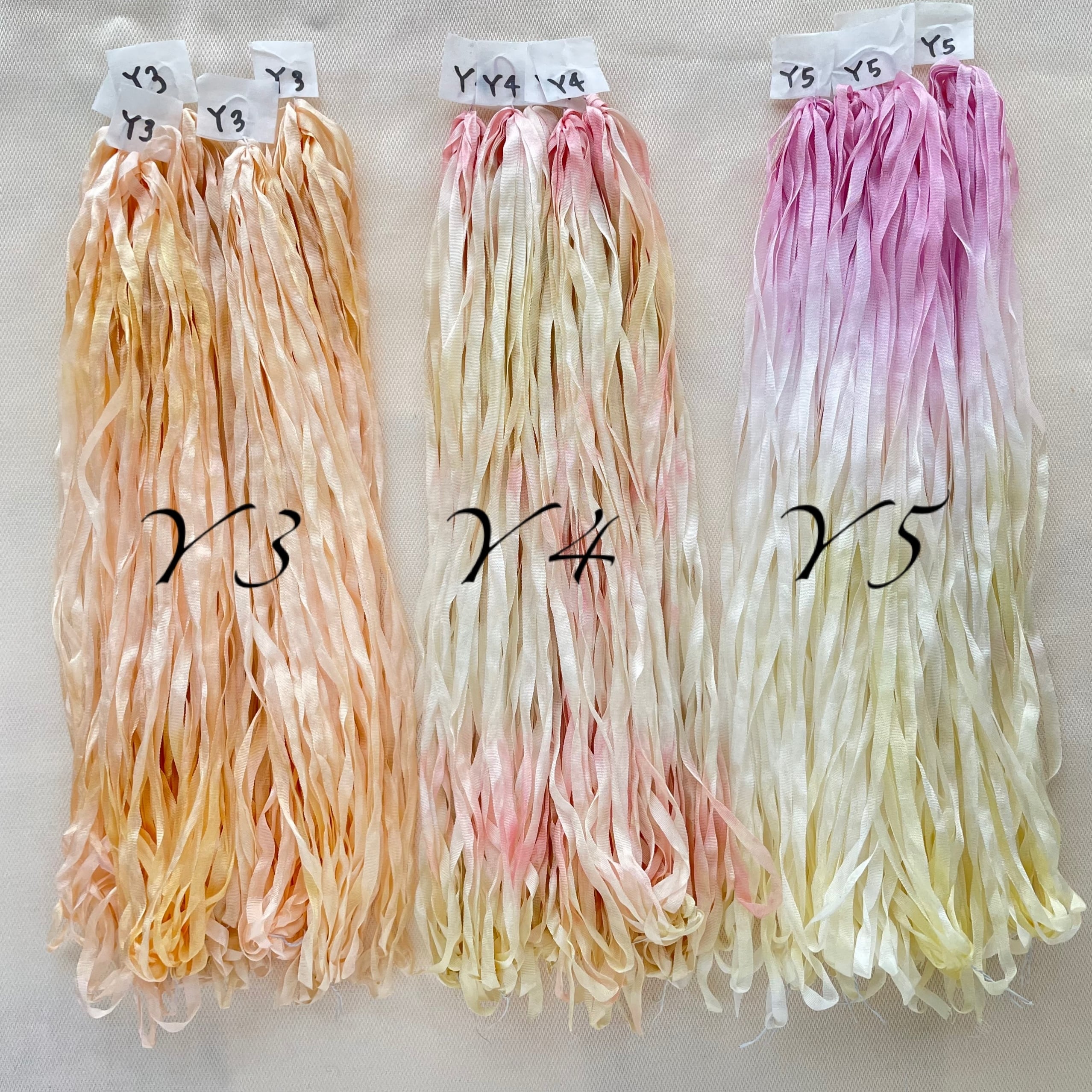 アイロンは絹の適温でアイロンを置いてリボンの方を引っ張ると手早く仕上がります(時々アイロンを起こして台を冷ましてください!)
