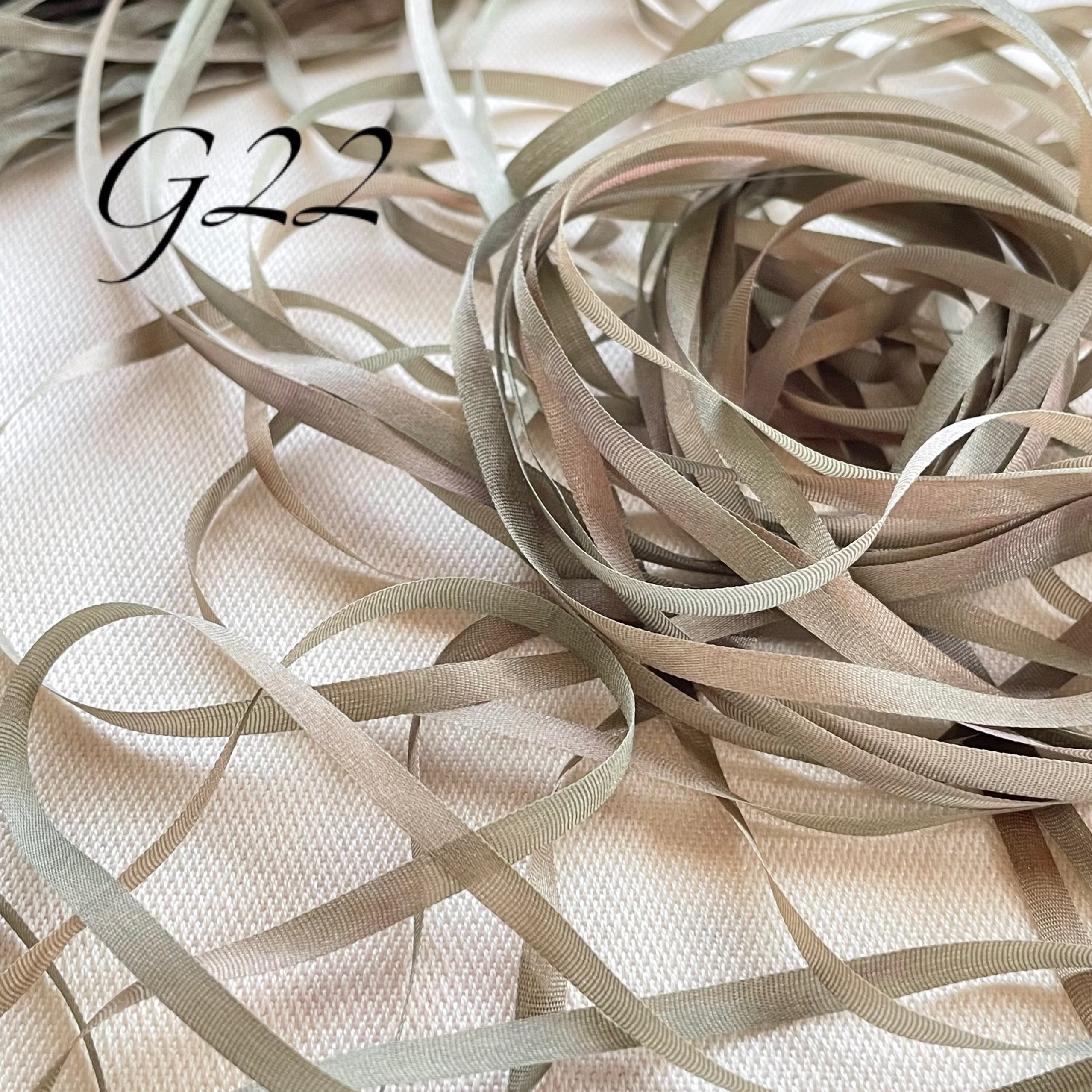 アイロンは絹の適温でアイロンを置いてリボンの方を引っ張ると手早く仕上がります(時々アイロンを起こして台を冷ましてください!)