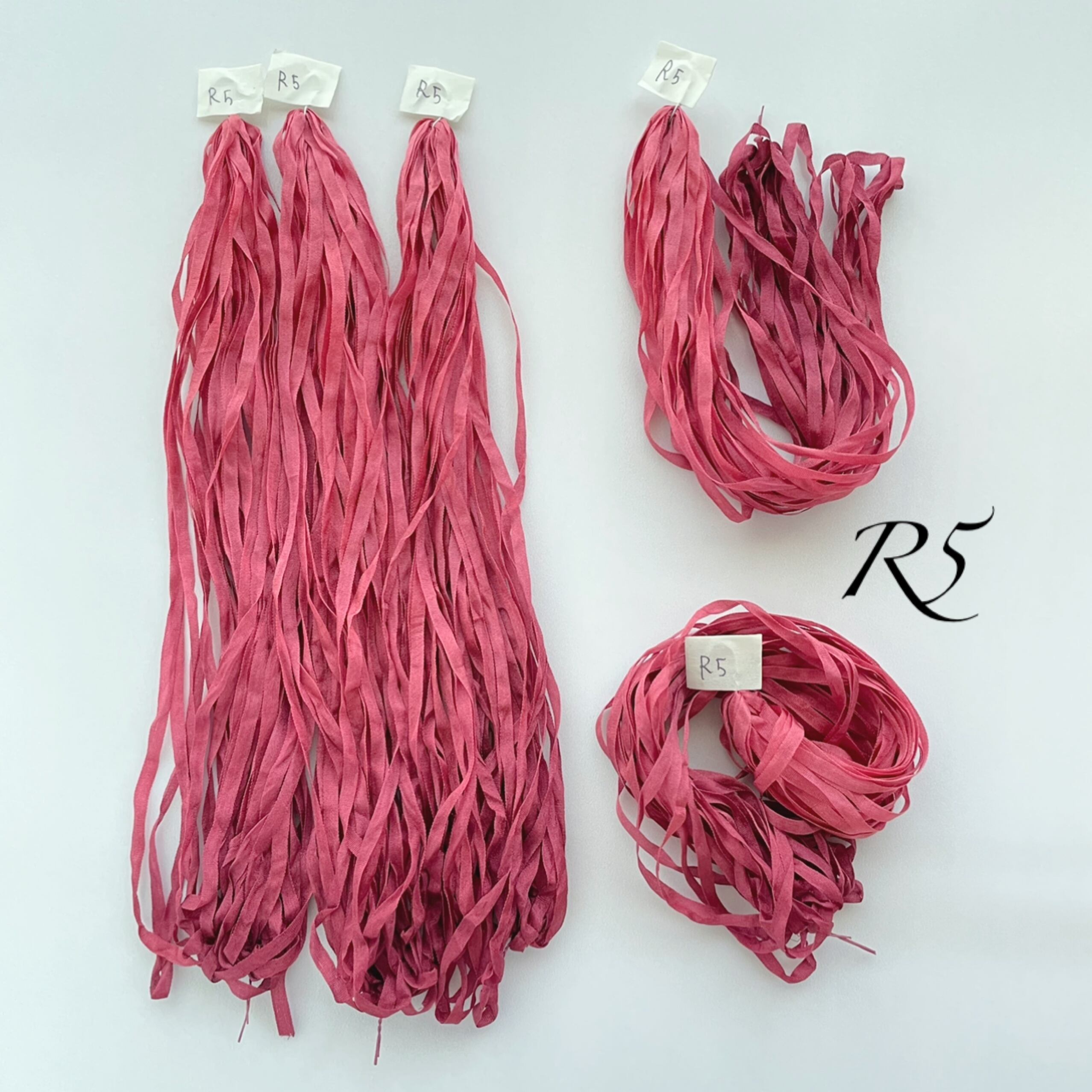 アイロンは絹の適温でアイロンを置いてリボンの方を引っ張ると手早く仕上がります(時々アイロンを起こして台を冷ましてください!)