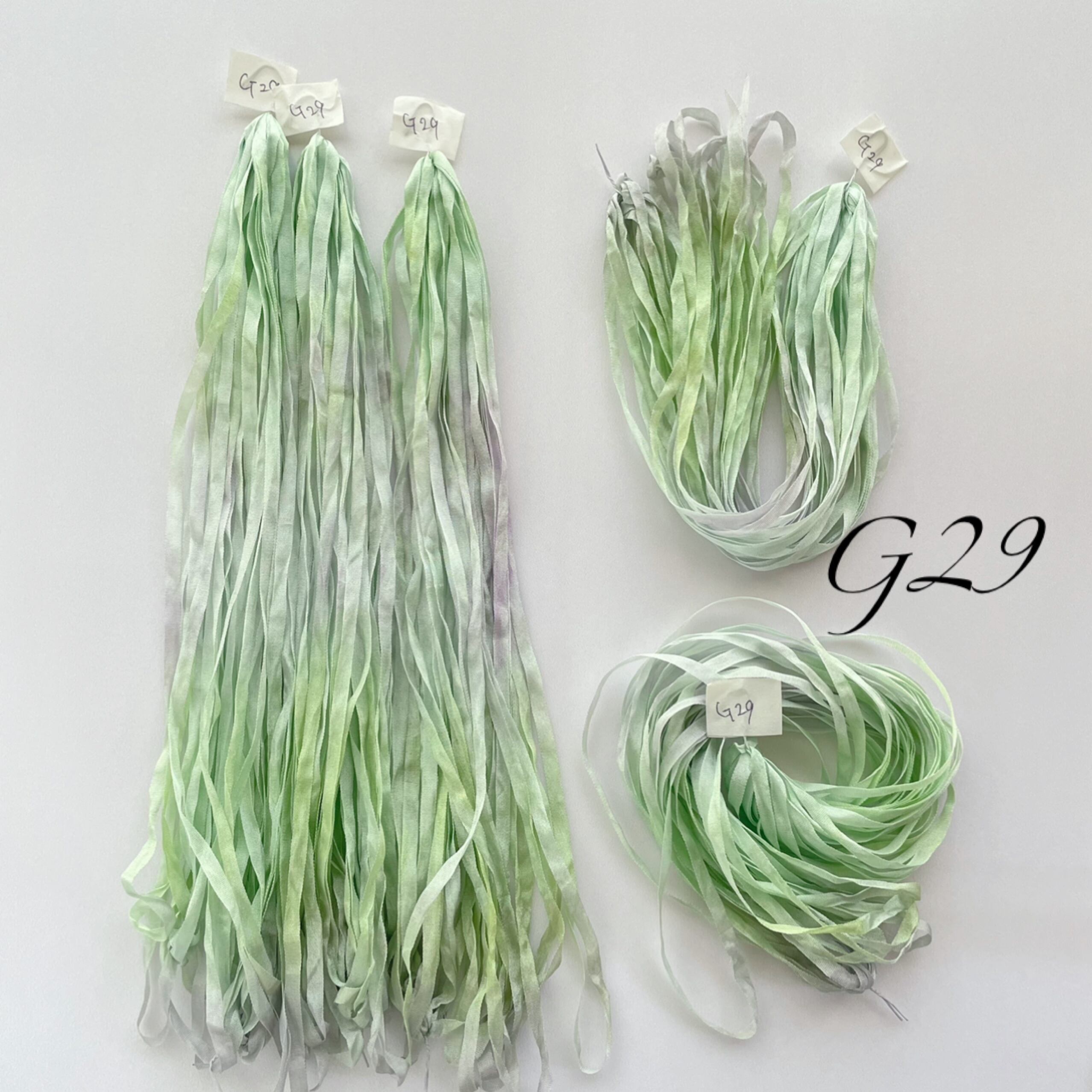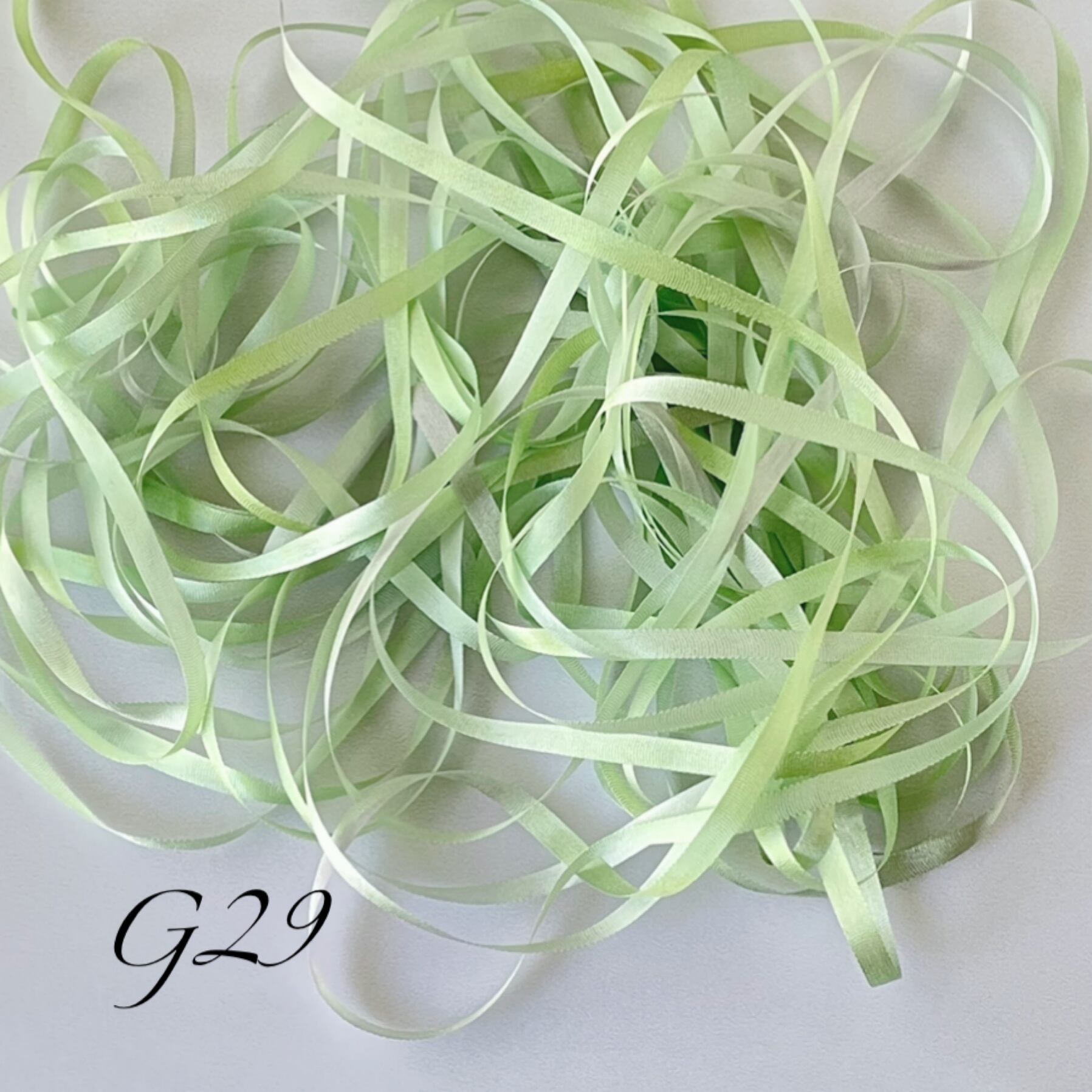 アイロンは絹の適温でアイロンを置いてリボンの方を引っ張ると手早く仕上がります(時々アイロンを起こして台を冷ましてください!)