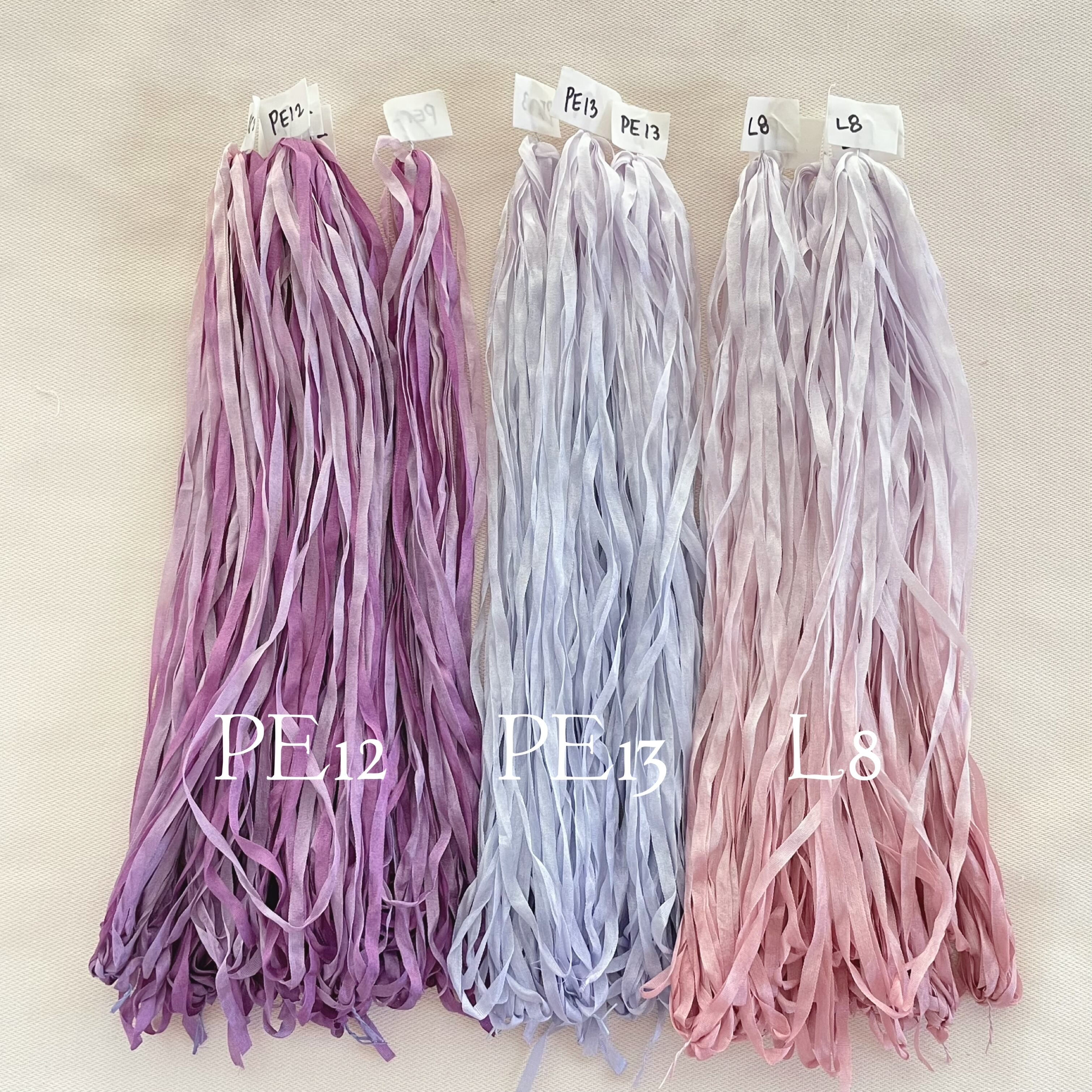 アイロンは絹の適温でアイロンを置いてリボンの方を引っ張ると手早く仕上がります(時々アイロンを起こして台を冷ましてください!)