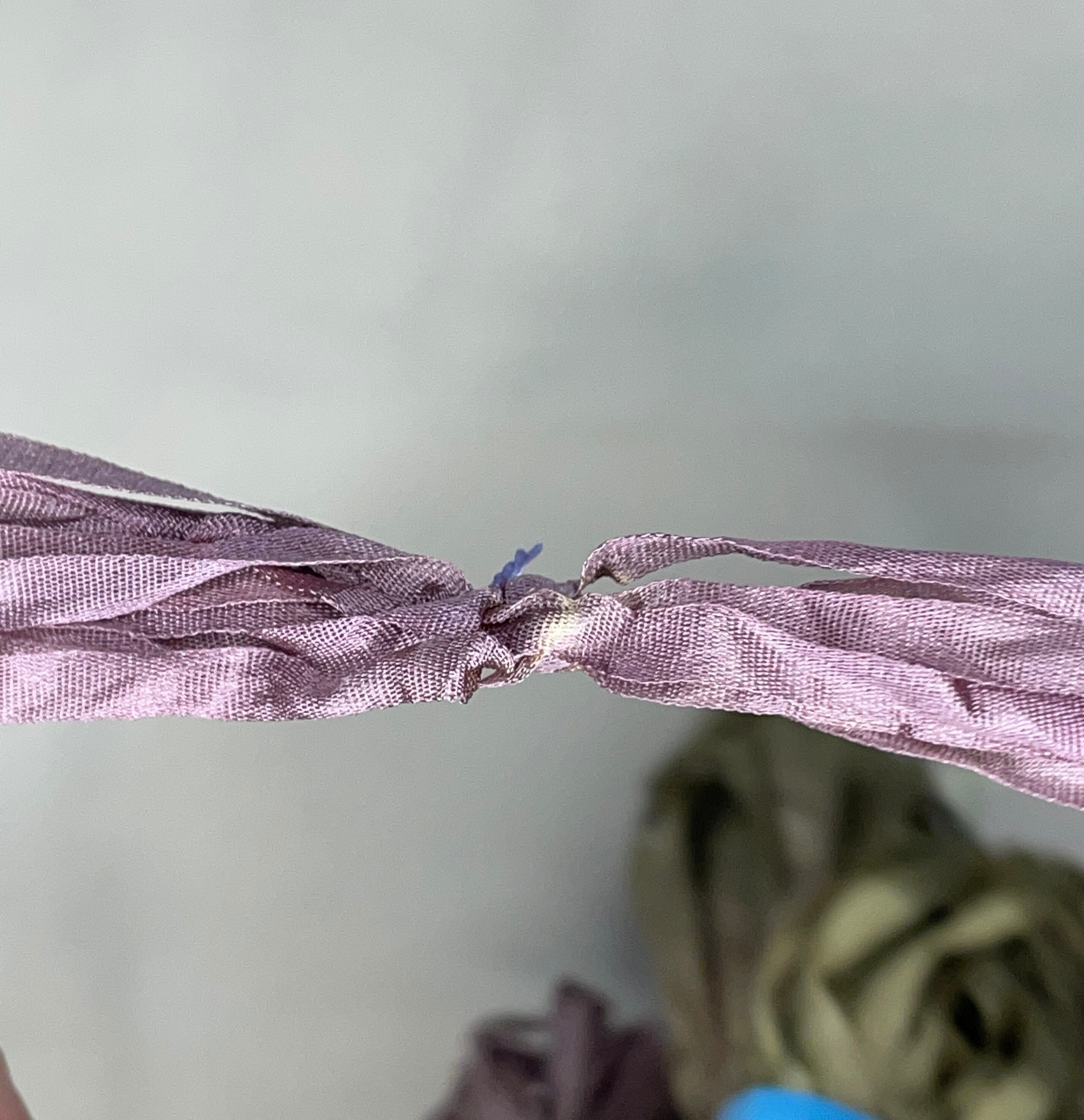 アイロンは絹の適温でアイロンを置いてリボンの方を引っ張ると手早く仕上がります(時々アイロンを起こして台を冷ましてください!)